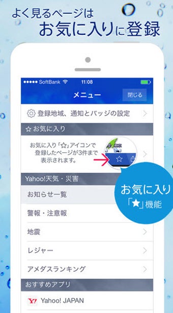 5ヶ所の天気をすぐにチェック 台風や地震などの災害もお知らせ
