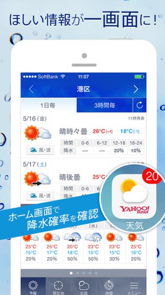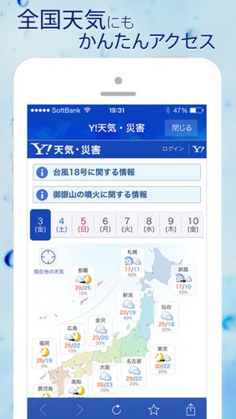 Yahoo!天気を使うと、Yahoo!JAPANで提供している天気予報をすぐに見られます。
